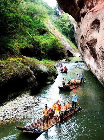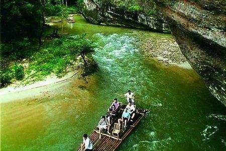 【上清溪】竹筏原生态竹排游(竹筏游四季可行,水流平缓且两岸风光非常秀美,沿途九十九曲、八十八滩,蜿蜒于荒无人烟的赤石翠峰之间,两岸壁立千仞,有仙家帆船、小三峡、落霞壁等